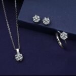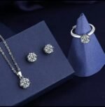 Be the first to review “Pendant set silver steel chain white stone lockite tops ring set brand Blue Bell™”