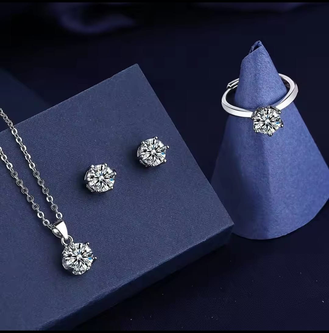 Pendant set silver steel chain white stone lockite tops ring set brand Blue Bell™